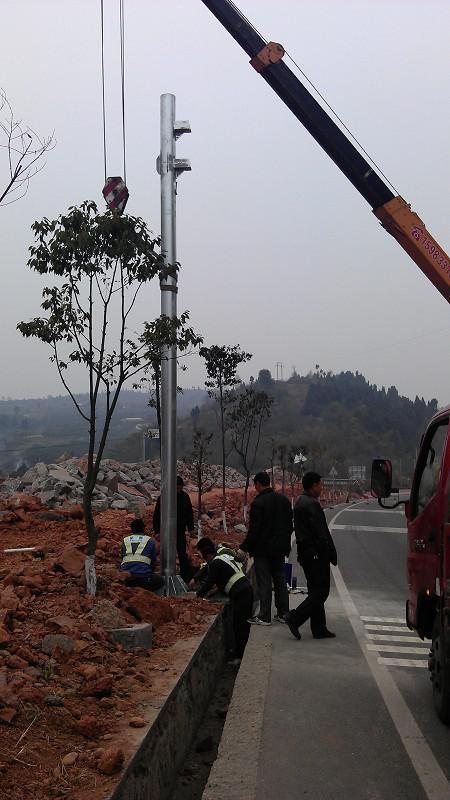 1、监控杆必须有避雷针及良好接地最好加引线导入地下(建议导电不走杆体),其接地电阻小于4欧;方向与行车道垂直(或按工程师要求)地脚螺栓作为主筋;