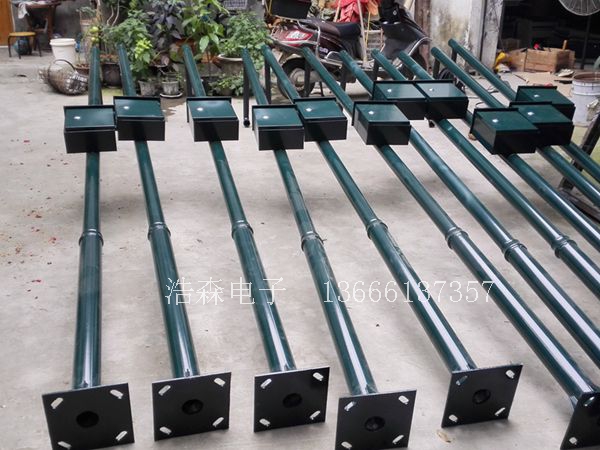 1、一般的城市道路监控立杆均按照高6米横臂1米,小区监控杆常规按高度3-4米臂长0.8米来进行制作。