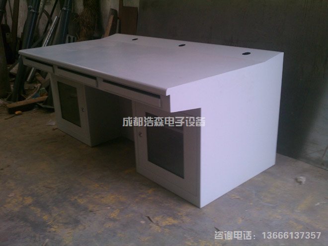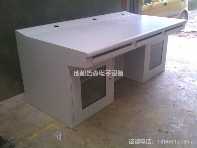 设计严格遵循人体工程学、组装式全钢结构、流线型设计、外形美观,造作方便。与电视墙相结合更显气派,方便工作人员查看电视墙上的每个监视设备。显示器等设备为嵌入式,符合人体生理及视觉特性。